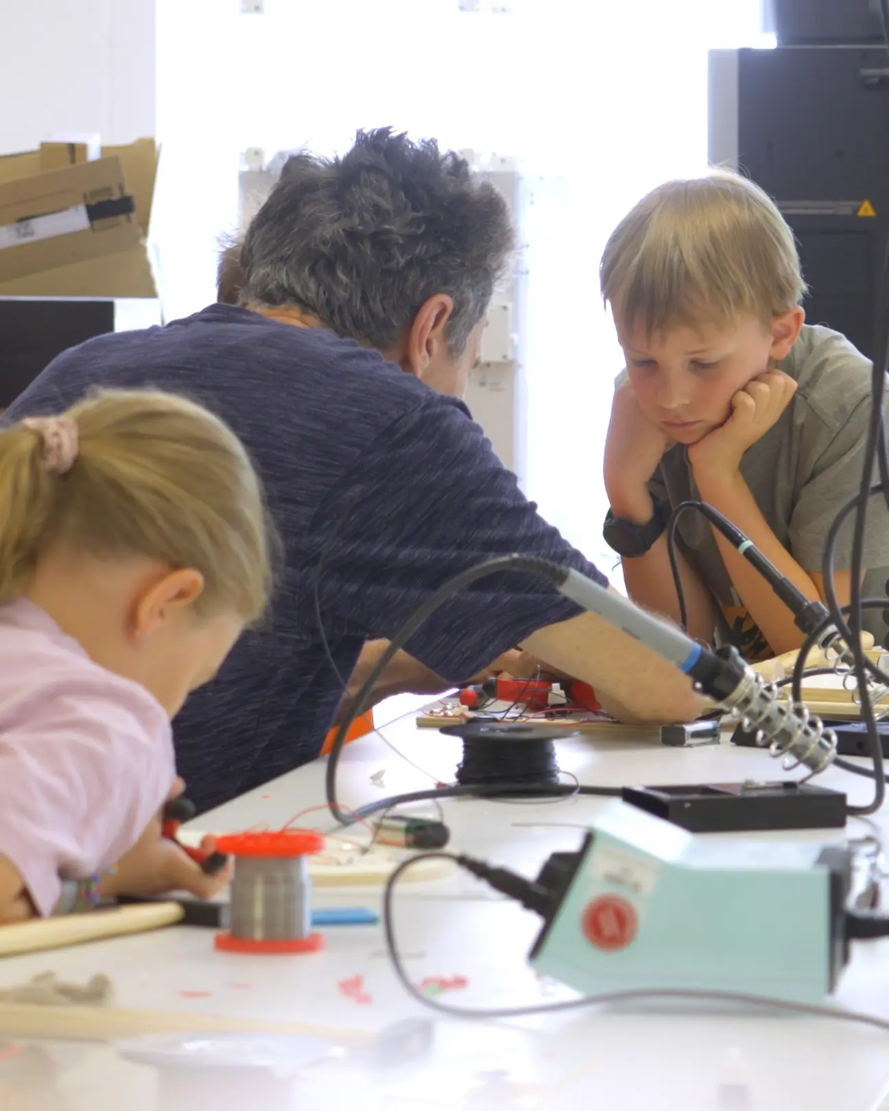 Baut kleine Maschinen, gestaltet Projekte aus Holz, Stoff oder Papier und lernt dabei voneinander. Eltern begleiten, Kinder probieren aus und gemeinsam entsteht etwas ganz Eigenes.